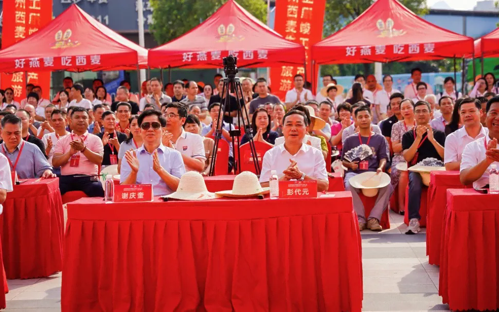 7月26日上午,阳光与欢乐交织,贺州西麦生态旅游工厂在喧天的锣鼓与飘扬的彩旗下,隆重举行竣工投产仪式。现场人潮涌动,热闹非凡,西麦食品集团创始人谢庆奎董事长、贺州市副市长匡永红等相关领导及产业界代表莅临出席。作为该项目的主创设计单位,我公司董事长梅勇先生受邀参加仪式,与来自各领域、各单位的嘉宾共襄盛举,共同见证燕麦龙头企业这一历史性的重要时刻。